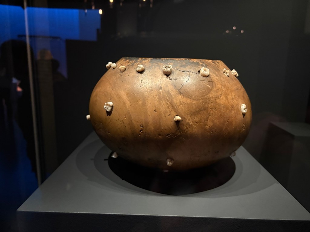 Creepy fella, almost looks like it might have children’s milk teeth!Quality of craftsmanship A healing bowl imbedded with human teeth from past chiefs