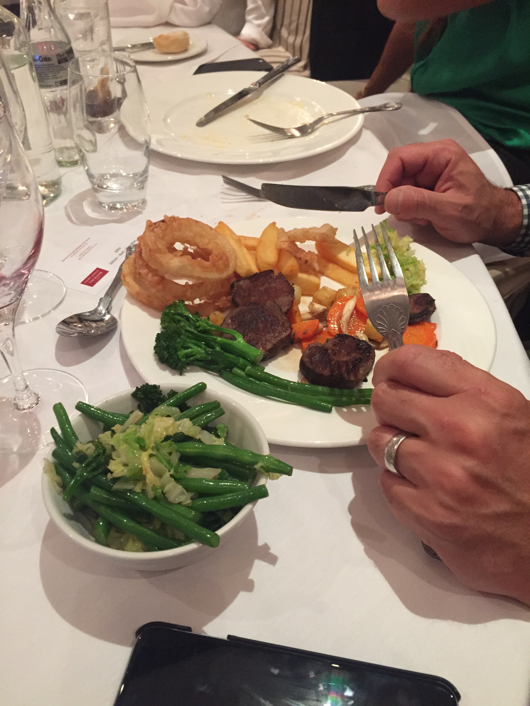 My cousin ordered the same meal as me, but he wanted his steak cooked to a crips! I like mine bloody, but after sending his meal back twice he finally got his meal which was completly different to what I had! I had a small piece of steak on my plate, with a scattering of little veg.